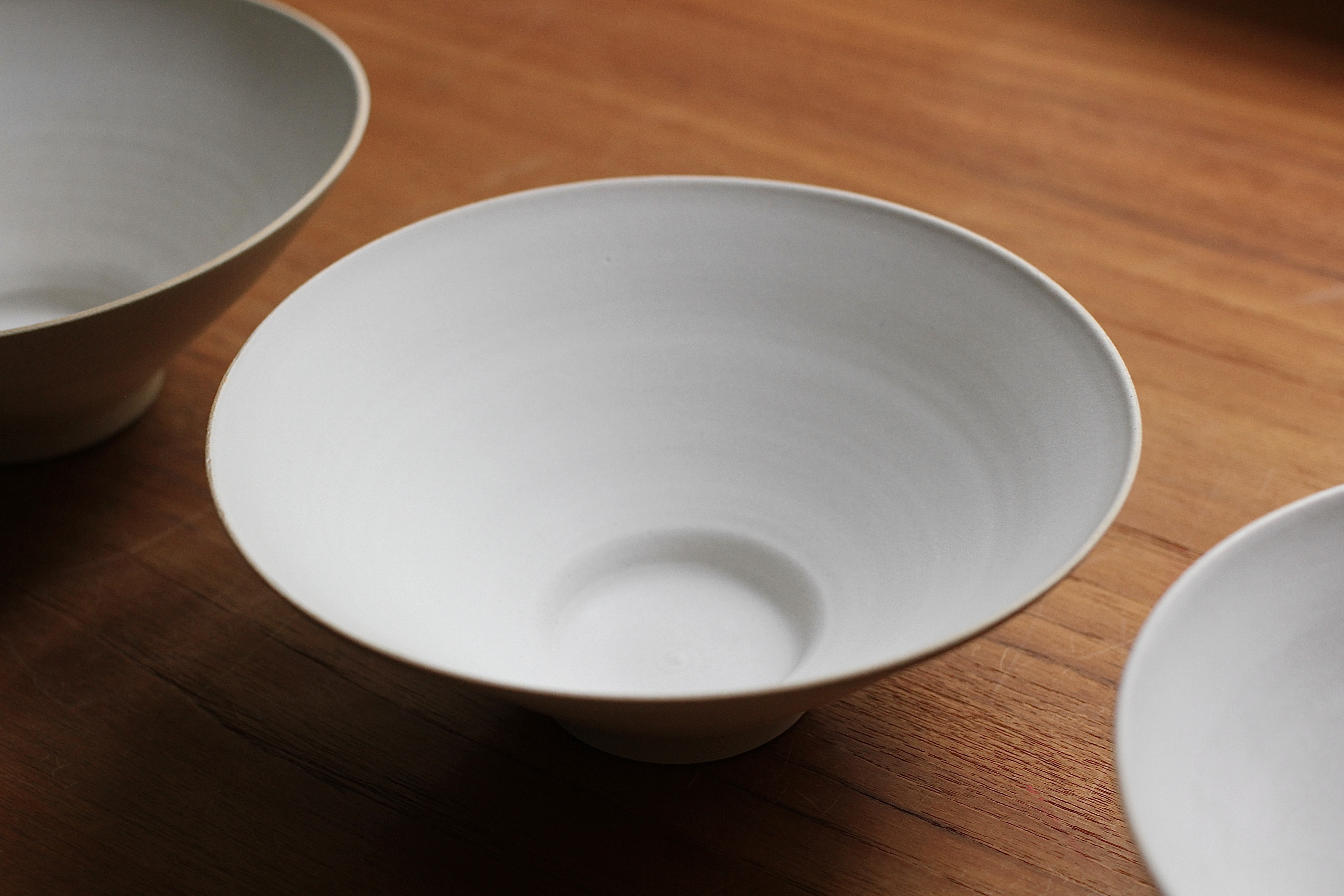 Hand thrown stoneware. White matte glaze. Various sizes