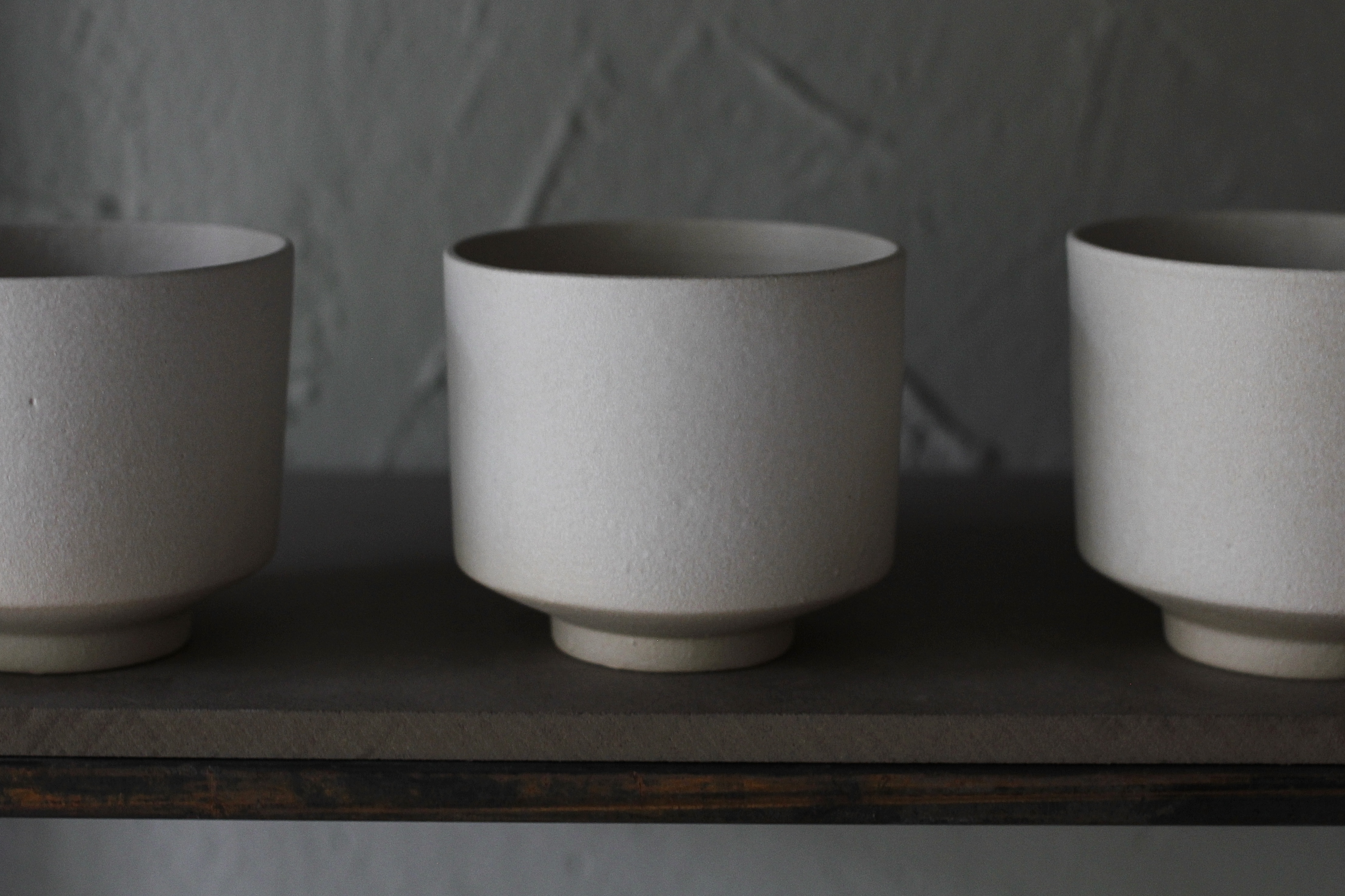 Slip casted stoneware. White matte glaze